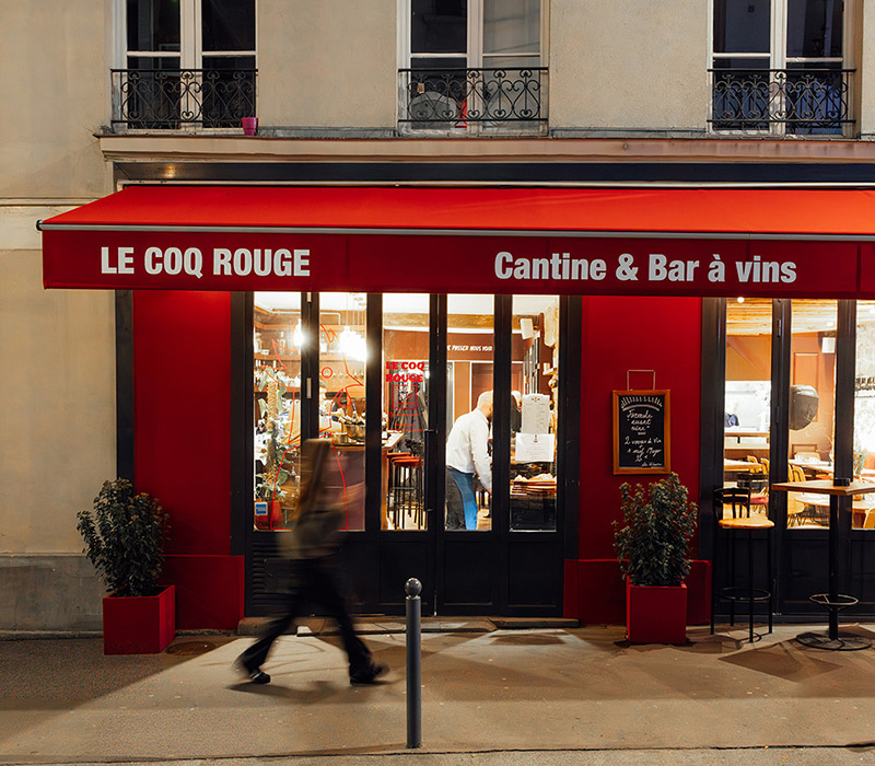 Le Coq Rouge Paris 9 reprend la signature de la maison : un lieu où l’on célèbre le vin sans prétention, mais avec passion.